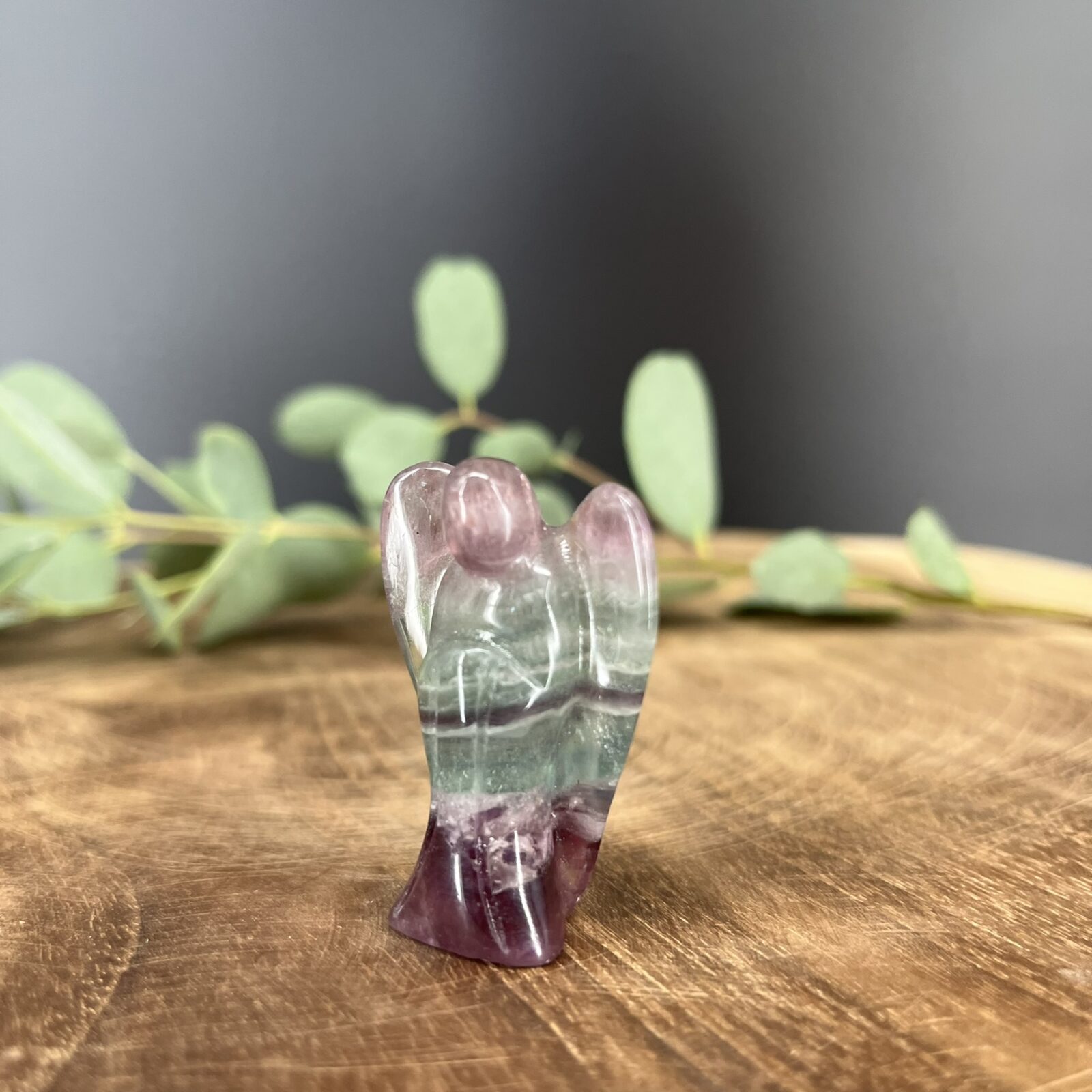 De fluoriet engel 4-5 cm kopen betekent kiezen voor een handgeslepen edelsteen beeldje dat 19 gram weegt. Door het compacte formaat past het gemakkelijk op een nachtkastje, bureau of in een altaaropstelling. Het paars-groene kleurenspel maakt elke engel uniek. Dit formaat is bijzonder geschikt voor mensen die een subtiel, maar krachtig spiritueel hulpmiddel zoeken.