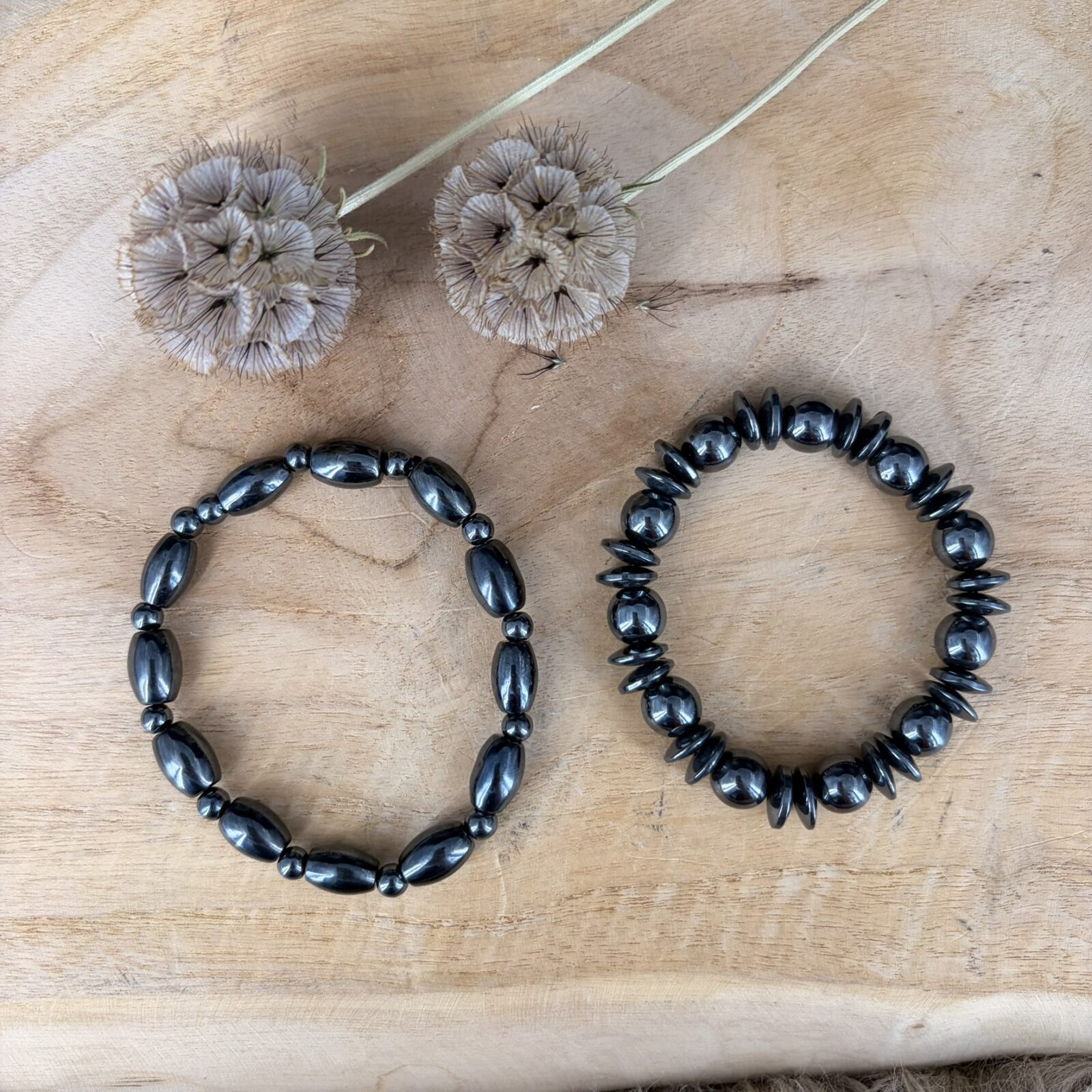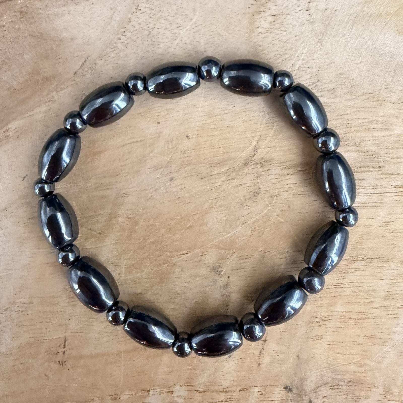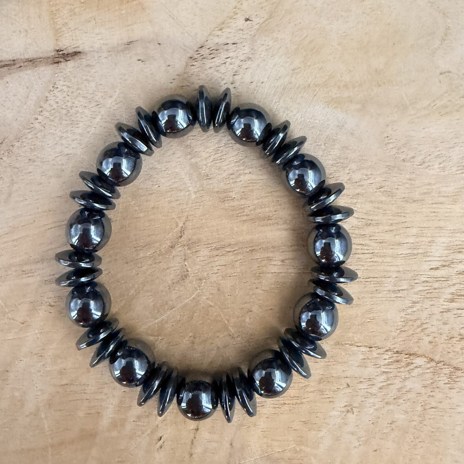 Wat is er anders aan de variatie armband? In plaats van kralen in één maat, heeft deze armband verschillende vormen en diktes. Dit geeft een speelser effect om je pols dan een standaard armband. De werking van het hematiet blijft natuurlijk even krachtig.