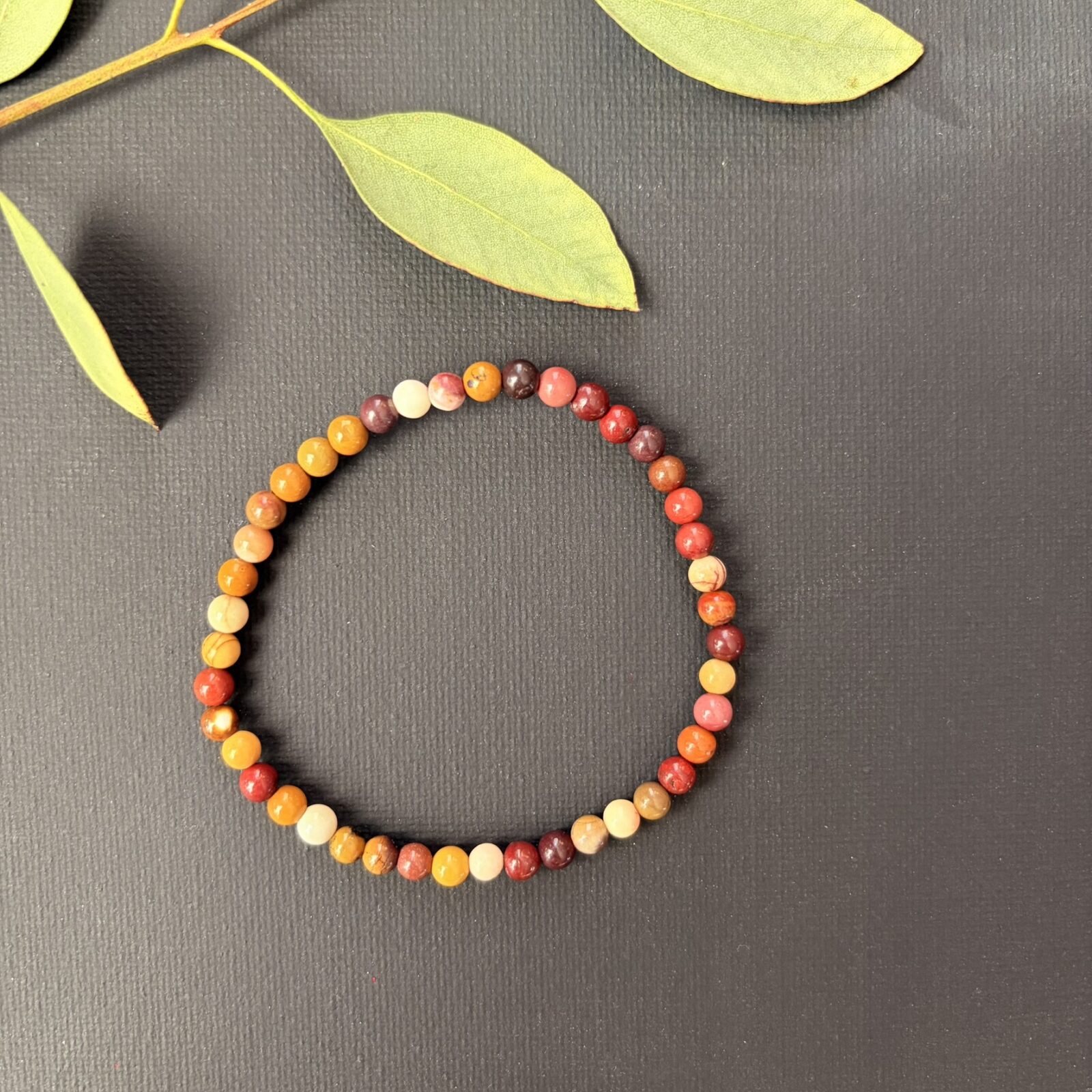De Mookaiet jaspis armband 4 mm ondersteunt je om stevig te blijven staan en tegelijk open te blijven voor groei.