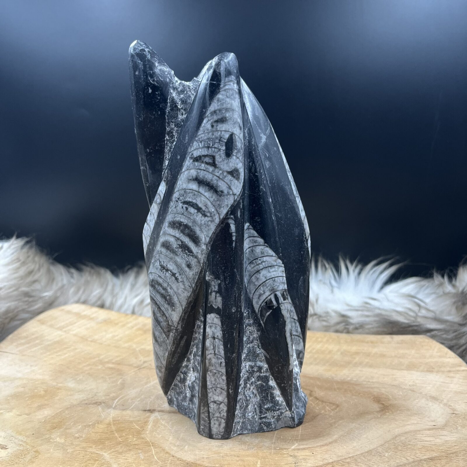 De Orthoceras behoort tot de oudste bekende fossielen ter wereld. Ze leefden in het Ordovicium. Dit was 485 tot 443 miljoen jaar geleden. Dat is lang voordat de dinosaurussen verschenen. Ze waren de eerste grote dieren. Dit inktvis fossiel kon wel meters lang worden. Dit specifieke fossiel is de versteende inwendige schelp van het dier. De fossielen zijn vaak ingebed in kalksteen. Dit fossiel wordt voornamelijk gevonden in de rotsformaties van Marokko. De hardheid van het gesteente is gemiddeld 3 tot 5 op de schaal van Mohs. Dit betekent dat je voorzichtig moet zijn met krassen. Het gesteente valt onder het Trigonaal kristalsysteem.