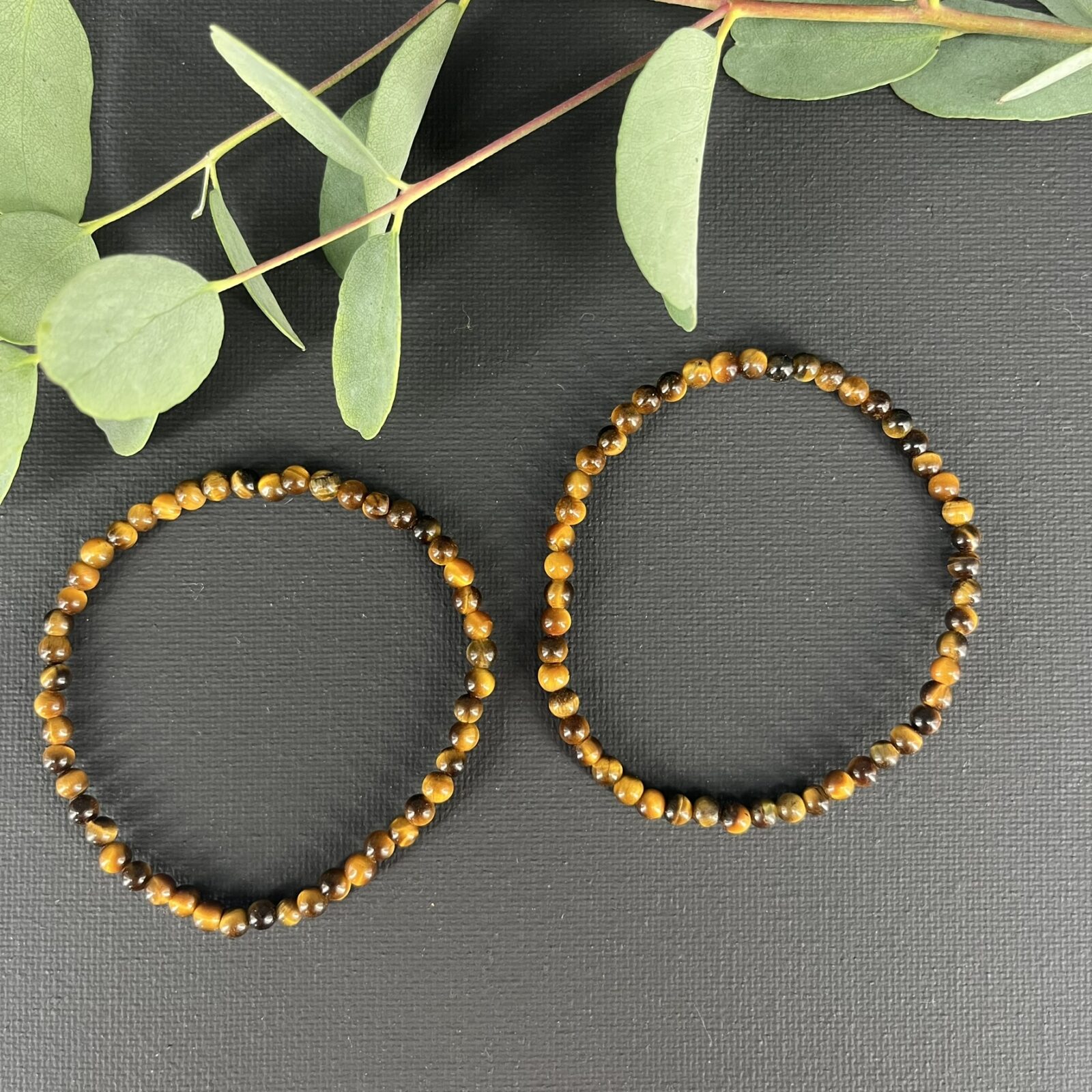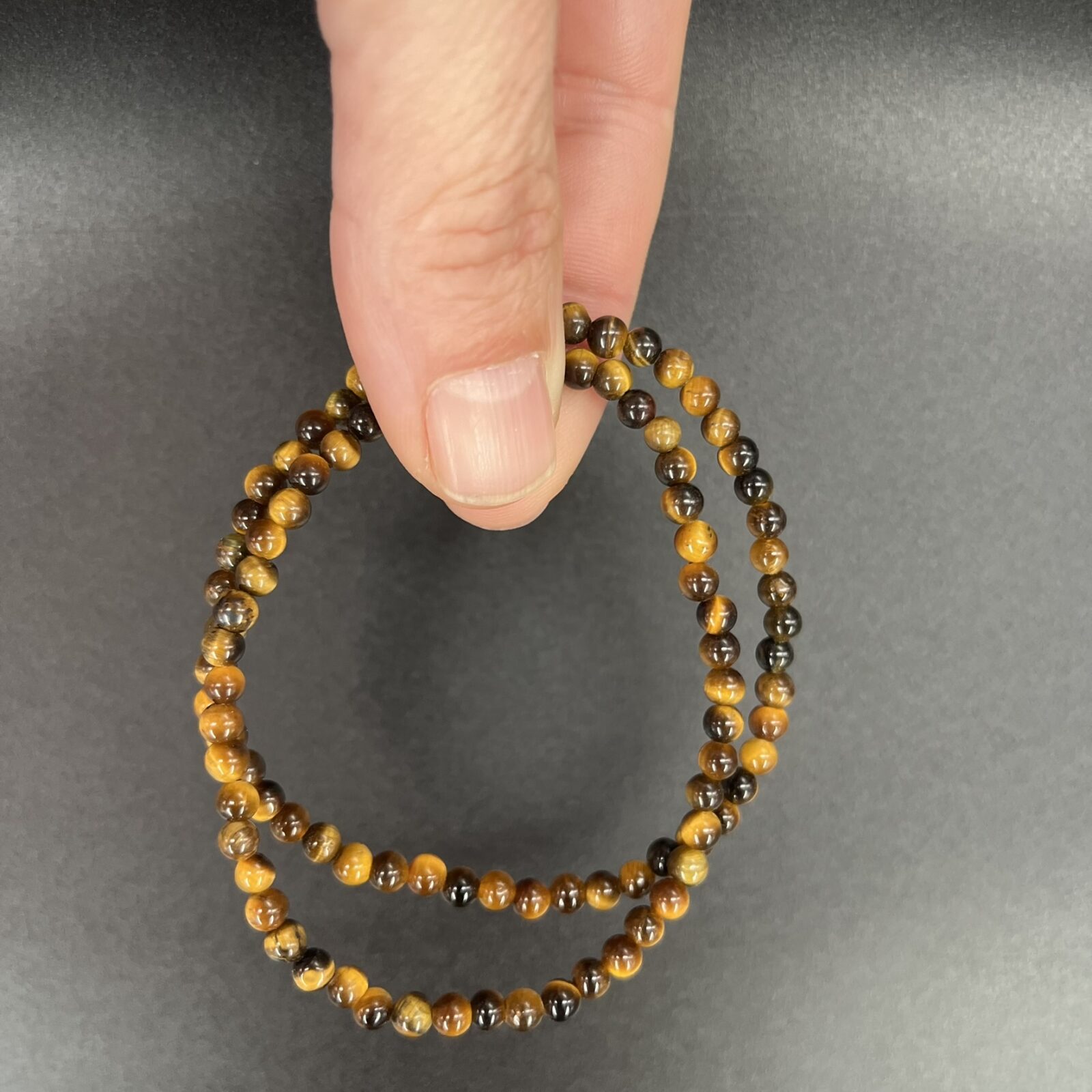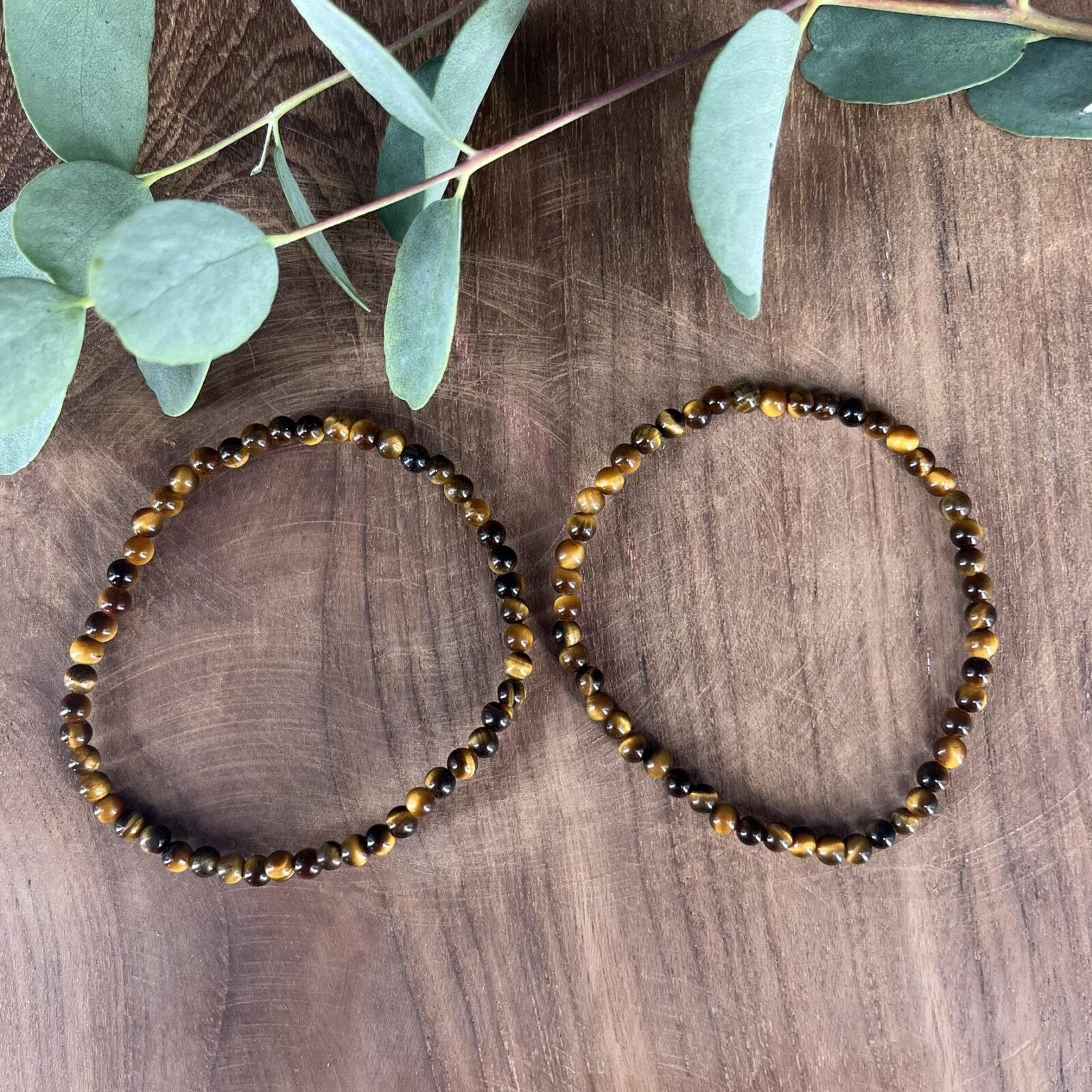 Een elastische armband met kleine 4 mm kralen van tijgeroog, geschikt voor dagelijks gebruik.