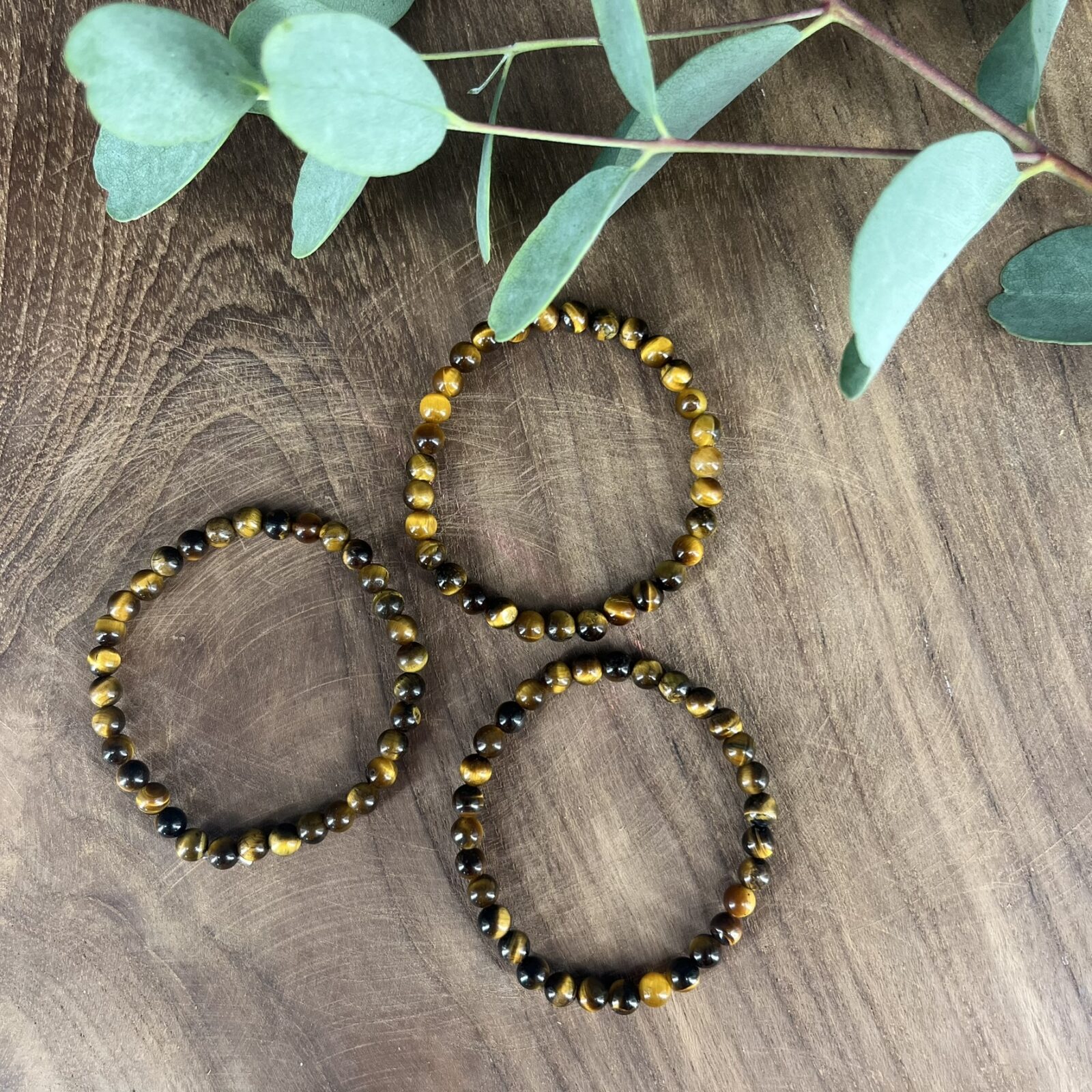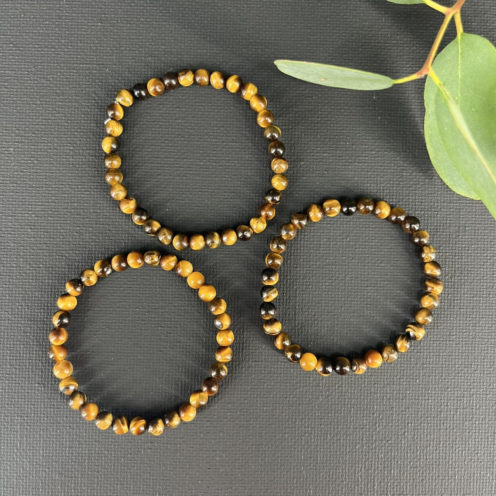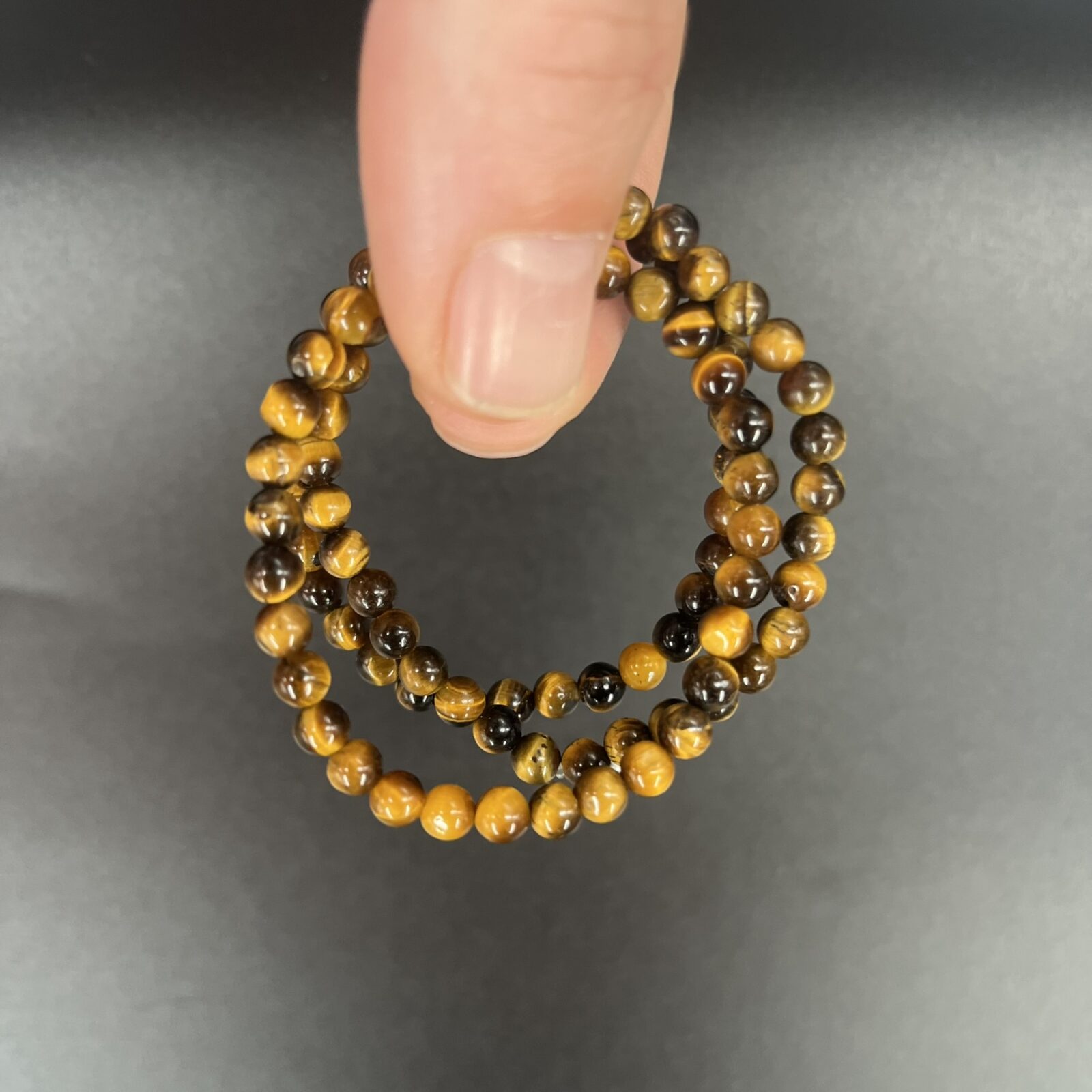 Een elastische armband met kralen van tijgeroog, speciaal gemaakt voor kinderen.
