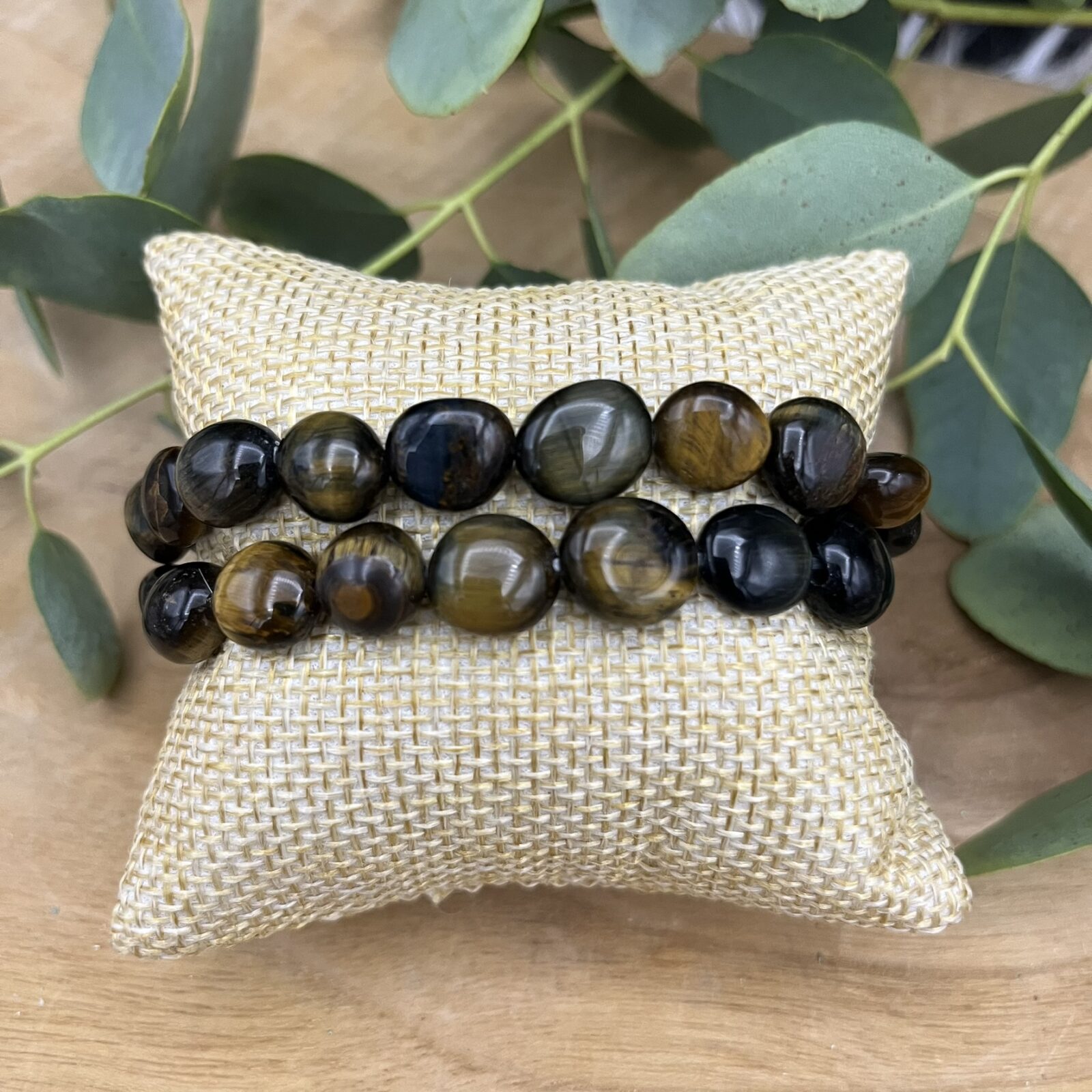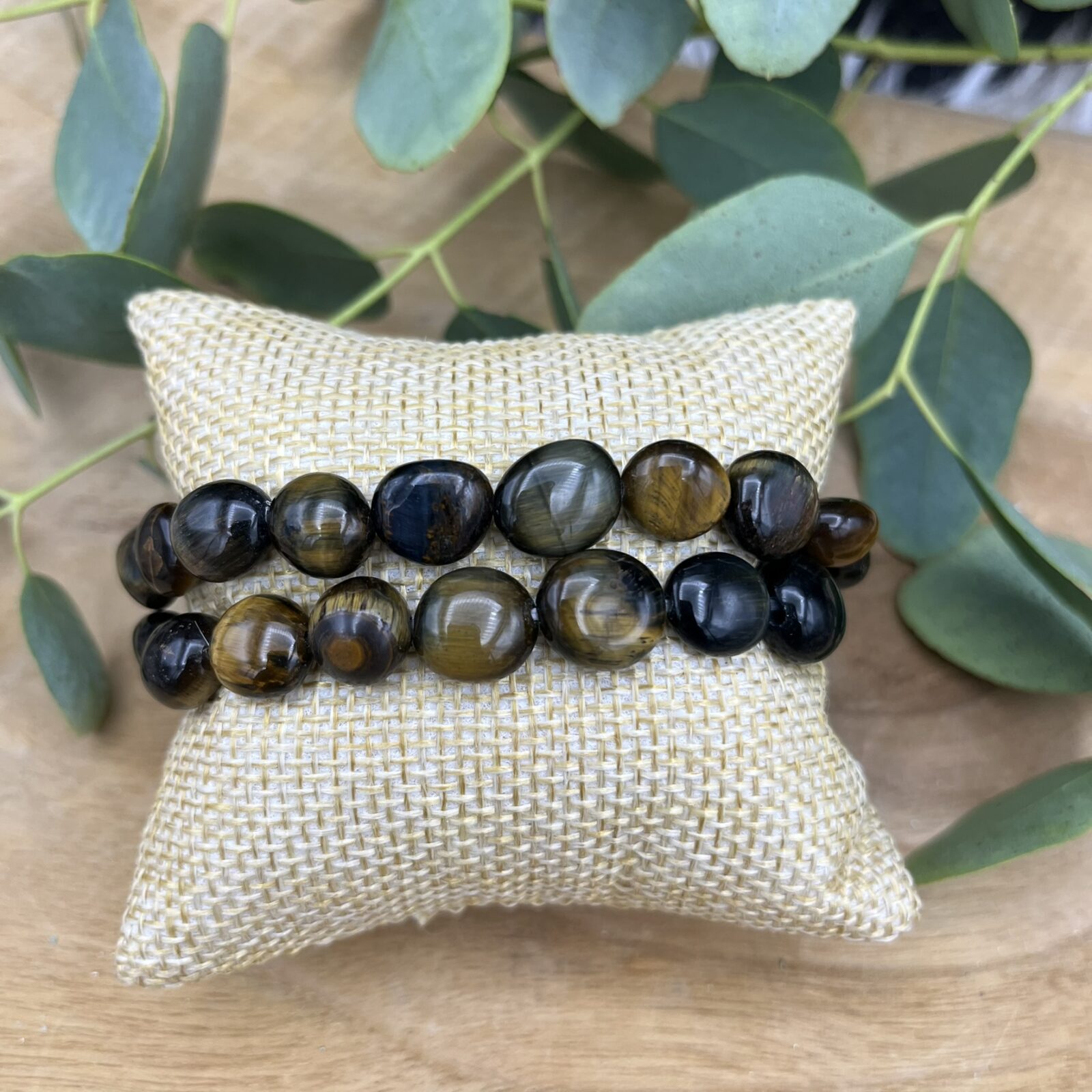 Je ontvangt een zorgvuldig geselecteerde Valkenoog trommelsteen armband 10–12 mm, vergelijkbaar met de foto. Elke armband wordt met aandacht verpakt en binnen 1–2 werkdagen verzonden.