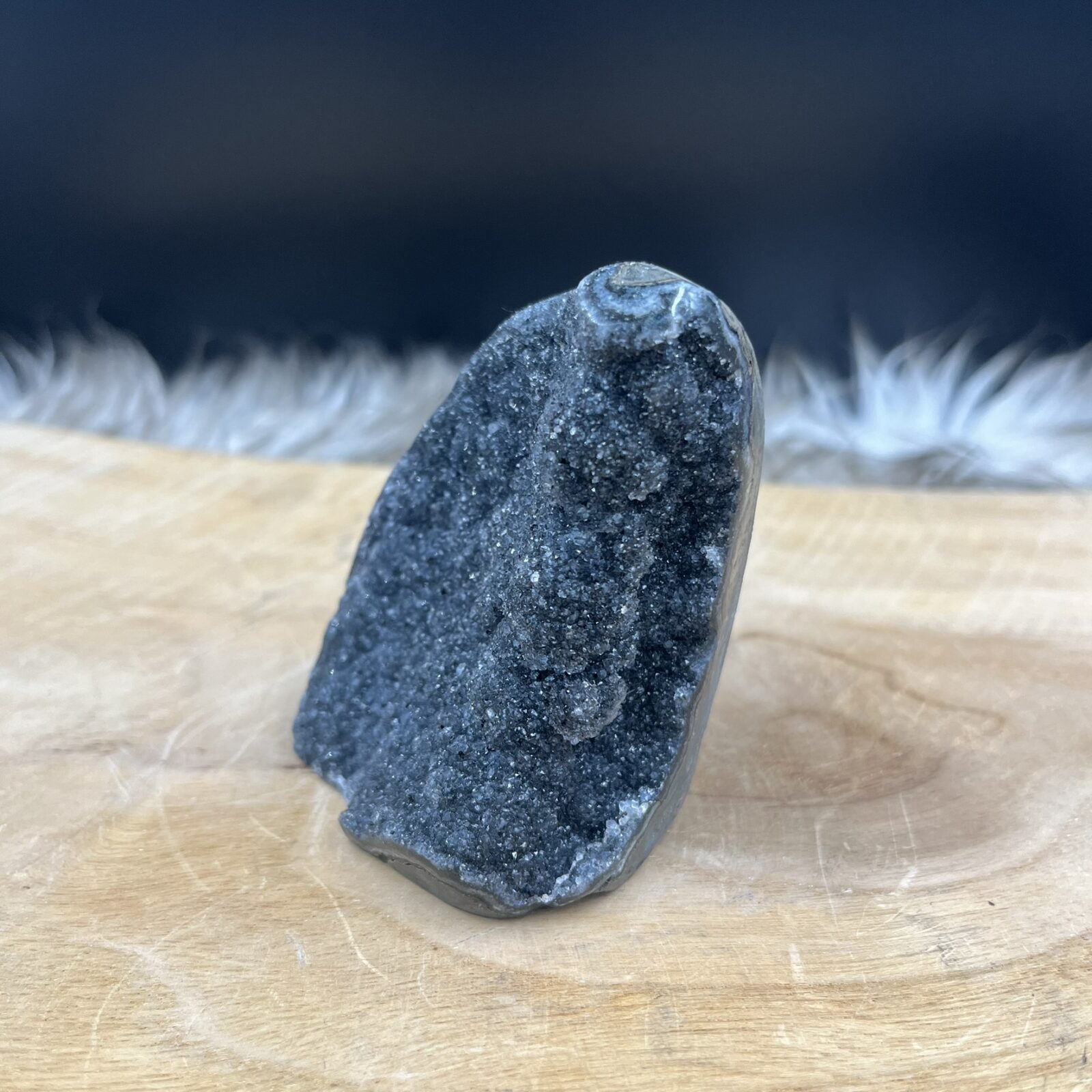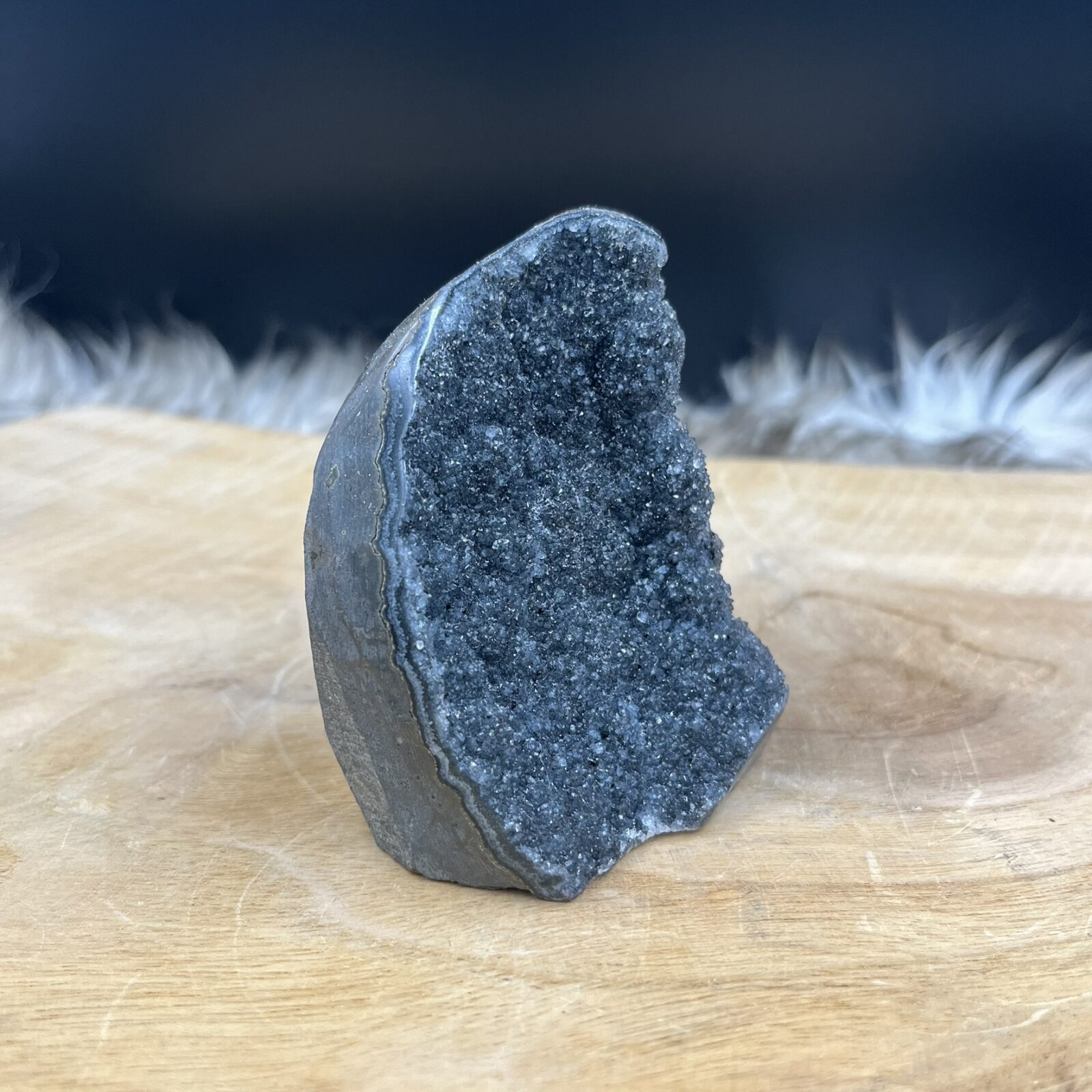 Amethist is al duizenden jaren een populaire en gewaardeerde steen. De naam komt uit het Grieks: amethystos betekent “niet bedwelmend”. Vroeger dacht men dat de steen beschermde tegen dronkenschap. Dit sluit mooi aan bij de algemene werking. De steen helpt namelijk bij het behouden van helderheid en nuchterheid. Dat geldt voor zowel je lichaam als je geest. Amethist heeft een hardheid van 7 op de schaal van Mohs en behoort tot het Trigonaal kristalsysteem. Amethist is op veel plekken te vinden, maar deze zwarte variant komt uit speciale geode-afzettingen in Brazilië.